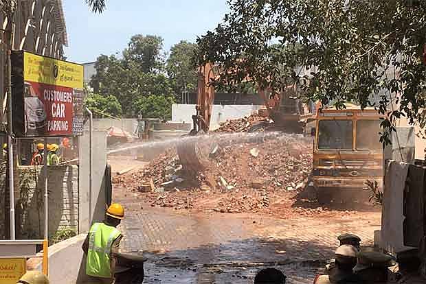 The task of bringing the building down was entrusted to Parveen Traders, a private entity. Speaking about the method used, Peer Mohammed of Parveen Traders said, "We are using jaw cutter for the job. It is a Volvo EC 460 machine, which can reach a height of 26 meters. The building is around 31 meters. To make up for the deficit in height, we are using debris to create a ramp, which has been happening since June 1. At 11 am today, we started demolishing the side of the building. The procedure will be completed within the next three days," said the expert.