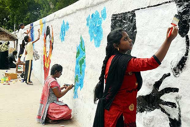 “Now we are drawing as individuals. I am confident that I will win the first prize,” Sangili said. The concept of his painting is the role of youth in preserving monuments. Another senior participant, Ezhil, said that ever since the arrival of flex banners they had very little opportunity to express their creativity on public walls and opportunities such as these competitions are viewed as great chance for them to do their best. The best thing in the drawing competition is that they are asked to paint only images with social messages. They are also happy that they could contribute for the beautification of their city and it is a matter of pride said Ezhil. The major impact of the drawings is that the political graffiti would no longer find their place in the walls of Madurai.