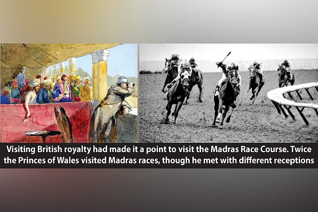 Visiting British royalty too had made it a point to visit the course. Twice the Princes of Wales visited Madras races, though he met with different receptions. While the first one in 1875 was welcomed wholeheartedly, the second in 1921 faced a boycott by Congress. In fact, the government had to stock the race club stands with Guides and Scouts to give a semblance of full capacity.