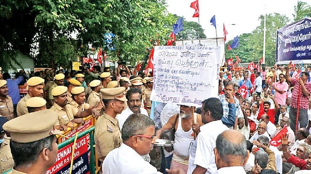CHENNAI: CITU-affiliated transport corporation workers picketed the Metropolitan Transport Corporation head office protesting against non-payment of revised dearness allowance to the retired employees and pending retirement settlement for the employees since 2020.