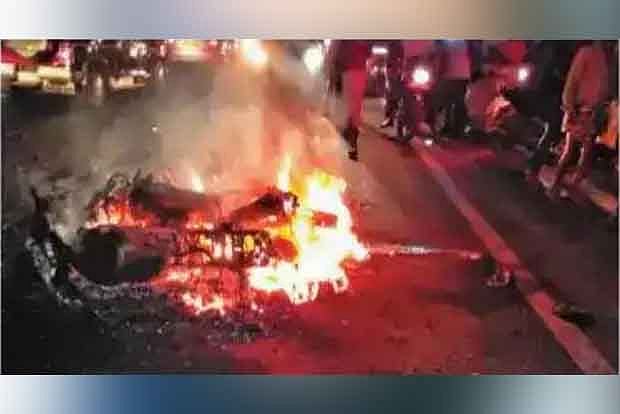 The police suspected that one of the pillion riders may have been smoking a cigarette when the accident happened.They added that the burning cigarette might have caused the fire after the collission.