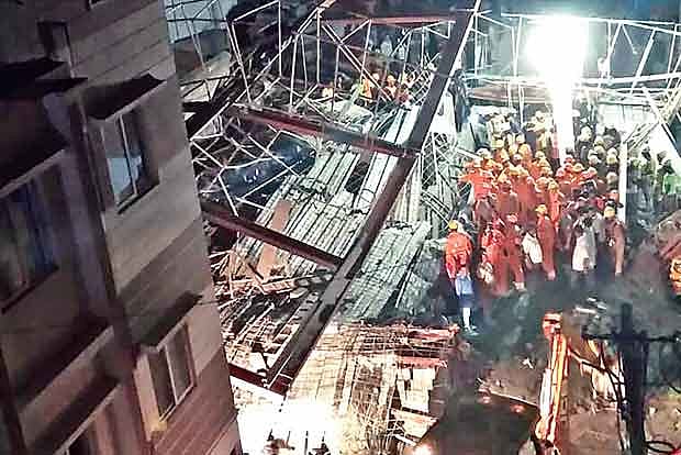 One person was killed and 32 others injured when an overloaded scaffolding of an under-construction building collapsed here, police said today.