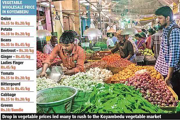 However, fruits like apple, sapota and orange remained pricey following low yield,” said K Jayaraman, member of Koyembedu Vendors Association. The price of many vegetables had soared following heavy torrential rains a few months ago that damaged the crops. With the situation limping back to normalcy, the prices of vegetable have dropped again.