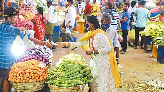Currently, onions are sold for Rs 14 per kg, tomatoes Rs 10 per kg, potatoes Rs 15 per kg, beetroot Rs 13 per kg, watery vegetables such as chow chow, cucumber, and radish for Rs 10 per kg each, and cauliflower for Rs 20 per kg.