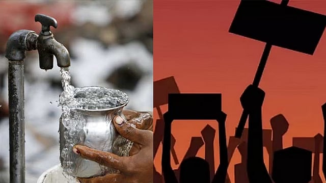 Since there was no proper response from the panchayat officials, angry villagers on Sunday gathered in front of the primary health centre with empty water cans and protested by blocking the Walajabad road.