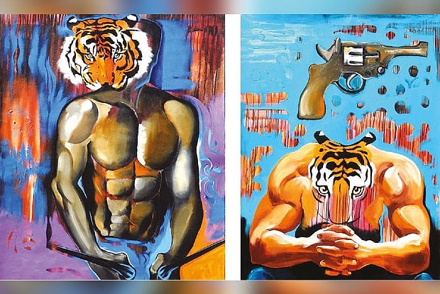 The painting series is about cliches, popular ideas, and the glorification of artificially built bodies. “At the end of the Indian economic boom just before the global recession, I joined the New Delhi Garhi studios in December 2006. The variety of derivative contemporary expressions present there was so heavy and oppressive that one art critic who visited me commented without much thought: I was a comic book painter. I explained to her that I was living in a jungle of my own making, straight from the Phantom comics of my early childhood. Everything was so hectic in that kind of an economic boom that nobody had time to spare.