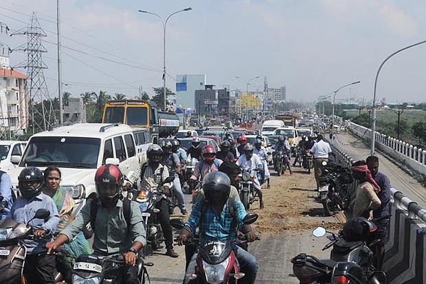 The police said the oil must have leaked from a tanker lorry just before the accident. As the traffic police covered the spillage with the sand and diverted the vehicles on the flyover, traffic was affected on the stretch for a few hours.
