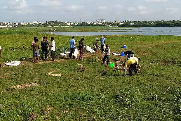 Around 150 residents from Nanmanagalam joined hands to clean the water body on Sunday. The residents were brought together after a door to door campaign and awareness drive, which highlighted the appalling proportion of dumping in the lake. Starting from 7 am to 9.30 am, the volunteers collected more than 400 kg of trash, working with members of the Environmentalist Foundation of India (EFI).