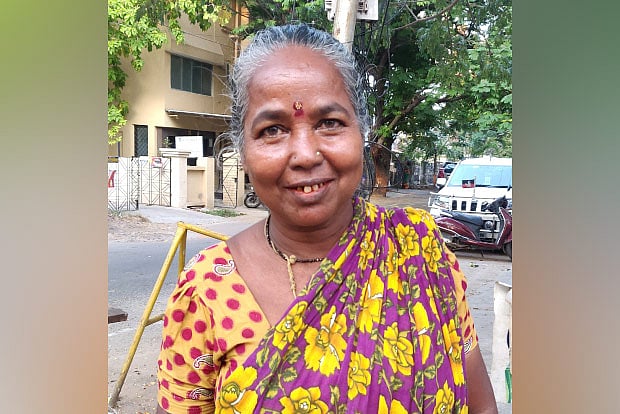 This is a job that my grandparents did, and then my parents, and now I am doing it. I really like to do it. I have been learning how to string the beads ever since I was a child. Now, I can do it really well and really fast. By the time we have been talking, I could have got one done already. People buy the necklaces that I sell, but it is not a lot. I do not count how much money I make. Some days are good, some are bad. At the end of the day, I have to make sure that I make enough to get food for the day. That is all that matters. We get beads from Agra. I went to Agra to buy some beads and bangles. It was so cold there. The products are cheap, and the people there have a different style of making the necklaces. They are also very fast when they do it. I wanted to speak to them, but I did not know the language. I have four daughters, and we live near the library in Kotturpuram. They too are into this profession. They did not want to study much. Even their children do not want to study, except for the youngest, Pooja. She really loves to study. She goes for a tuition nearby, and that man really helps her with her studies. She has been saying she will build houses for her parents and grandparents. She has got big dreams, and I hope she fulfils them.