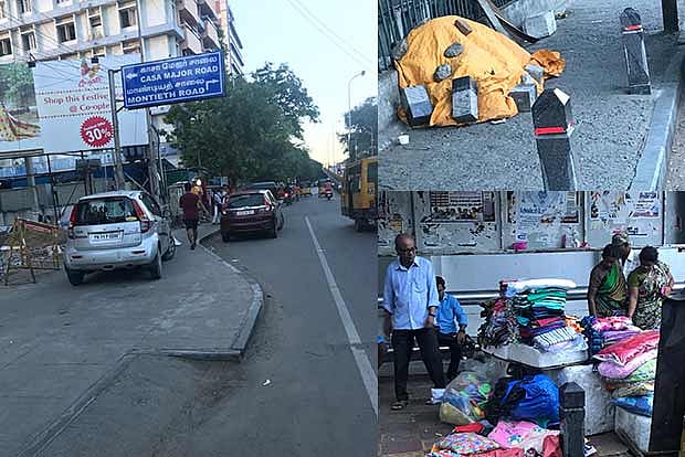 Pantheon Road in Egmore is an example of what is both right and wrong with the pavement infrastructure in the city. Sections of the road have perfectly laid, usable pavements with bollards to prevent parking and encroachment and it allows those who use the road to navigate safely. On the other hand, most of the road is rife with encroachments, illegal parking and debris strewn on footpaths.