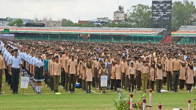 JAIPUR: Nearly one crore school children in Rajasthan created a world record by singing patriotic songs at the same time under the 'Azadi Ka Amrit Mahotsav' campaign to celebrate the occasion of 75th Independence day in India.