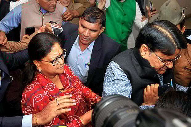 The chief minister won the Jhalrapatan seat with a margin of 34,980 votes by defeating her nearest rival and Congress leader Manvendra Singh, the son of veteran BJP leader Jaswant Singh.