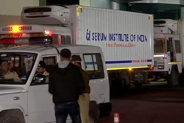 Three temperature-controlled trucks rolled out of the Serum Institute gates shortly before 5 am and left for Pun airport, from where the vaccines will be flown across India.