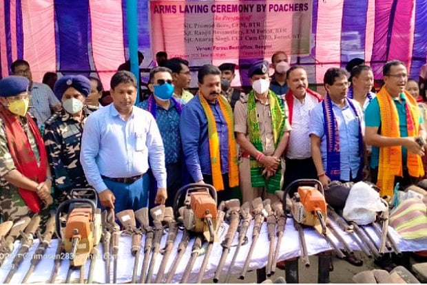 Officials said that responding to the appeal of the Assam government and the Bodoland Territorial Council (BTC) administration, over 500 poachers and wood cutters deposited their arms and ammunition at a function at Bengtol.