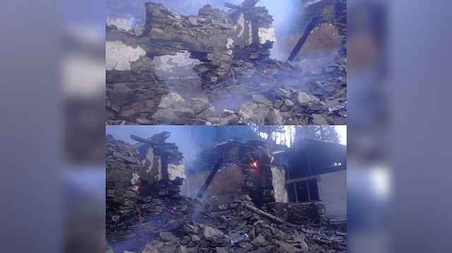 Deputy Pradhan of Shahdhar Panchayat, Dilip said, "The incident took place sometime around 2 or 3' o'clock this morning. Everyone was sleeping in their homes when the fire broke out and the eight-room house made of wood was completely burnt to ashes. Since the village is far away from the road it became difficult for fire tenders to arrive in time to control the blaze. Neighbours were not aware of the fire and people started gathering at the spot only in the morning."