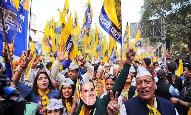 The BJP is protesting near the AAP head office. The offices of both the parties are on the same road, a few hundred metres from each other.