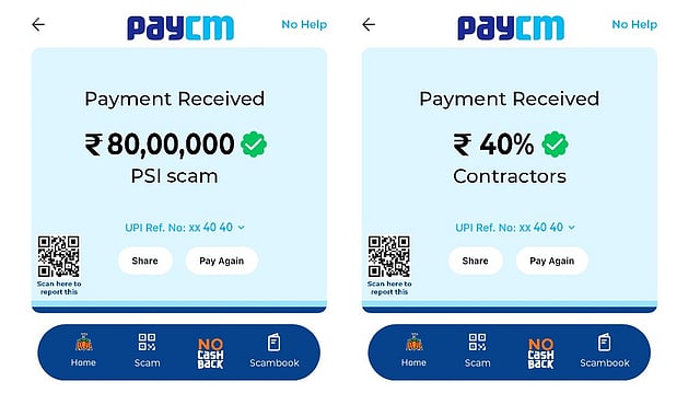 After 'PayCM' posters that were pasted on walls in some parts of the state capital Bengaluru, Congress now released a series of 'PayCM' screenshots that speaks about various scams including the Cash for CM post, the infamous 40 per cent commission, PSI scam, assistant professor and junior engineers recruitment scam etc.