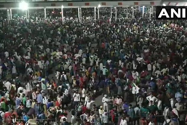 At a time when social distancing is being repeatedly emphasised, the workers were not keeping the mandated distance and were moving in different directions. Many of them were also not wearing masks.