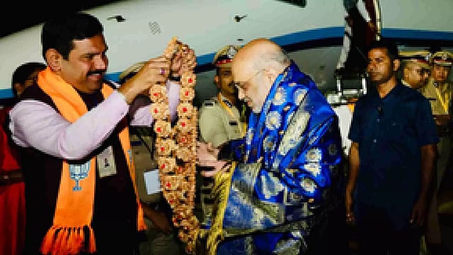Shah reached the Mandakalli airport at 3 a.m. where State BJP President B.Y. Vijayendra welcomed him to the state.