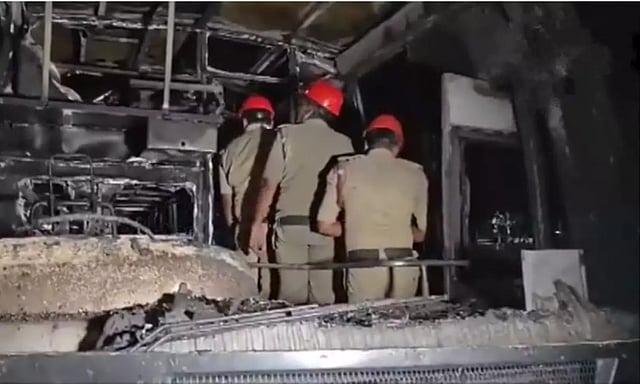 In the visuals, fire officials were seen dousing the flames. "A fire broke out in a private bus travelling from Tirupati to Srikalahasti, on Tirupati-Renigunta National Highway last night. All the passengers were evacuated in time and no casualties were reported," said officials. Further information is awaited.