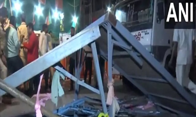 Dilip Srivastava, Police officer, Jabalpur told ANI, "After PM Modi's rally passed, a stage built near a showroom collapsed due to overcrowding. In this one police personnel and three other people have got injured. All of them have been sent to the Victoria Hospital, Jabalpur, for treatment."