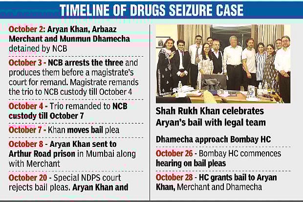 The HC’s order granting bail to Aryan Khan was hailed by several film personalities, while a huge group of fans gathered outside the superstar’s sea-facing bungalow ‘Mannat’ in suburban Bandra in show of solidarity and celebrate end of his incarceration. The legal team of the 23-year-old Aryan Khan will now try to complete the formalities for his release by Friday or Saturday. Justice Sambre said he would pass a detailed order assigning reasons later.