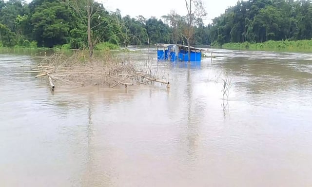 In the Sivasagar district, the flood waters of the Disang River inundated several parts of the Disangmukh area and low-lying areas and entered many houses.
