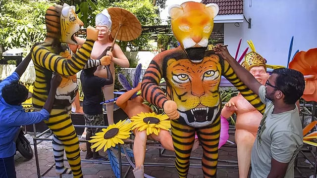 Various folk art forms like Theyyam, Kolkali, Mayilattam, Ammankudam, Pulikkali, and classical art forms like Kathakali added colour to the Athachamayam procession.