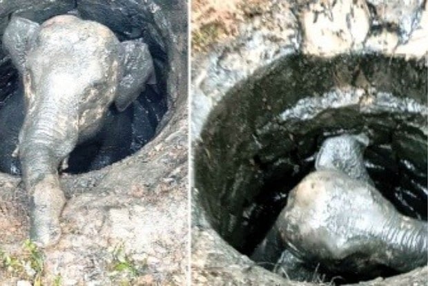 According to the forest officials, the calf may have fallen into the pit on Monday night or early on Tuesday morning, and it could be part of a herd of elephants that passes through this estate.