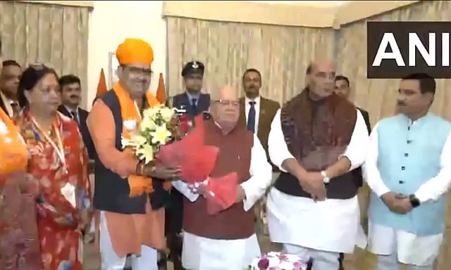BJP State president CP Joshi presented a letter to the governor, informing that Sharma has been elected as the leader of the BJP legislature party in the state, according to a Raj Bhawan statement.