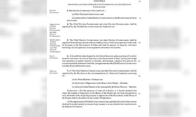 The Bill, in effect, aims to dilute the Supreme Court's March 2023 judgment in which a Constitution bench held that the appointment of Chief Election Commissioners and Election Commissioners shall be done by the President on the advice of a panel comprising the Prime Minister, Leader of Opposition and the Chief Justice of India.
