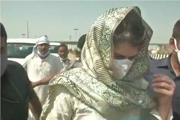 The convoy was stopped near Pari Chowk, prompting party workers and senior leaders to proceed on foot, with some functionaries saying they will walk down to Hathras.