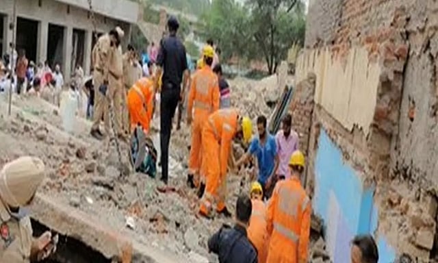 Delhi BJP President Virendra Sachdeva along with MP Ramesh Bidhuri and local corporator Rajpal Singh went to Srinivaspuri ward where three motorcycles and two rickshaws were buried under the debris.