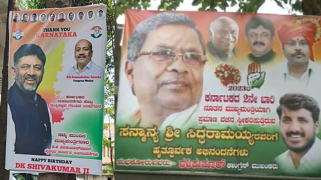 Posters were also put up on Sunday outside the house of D K Shivakumar's house in Bangalore wishing him an advanced birthday which is on May 15 with writing in them "Birthday greetings to the new Chief Minister of Karnataka".