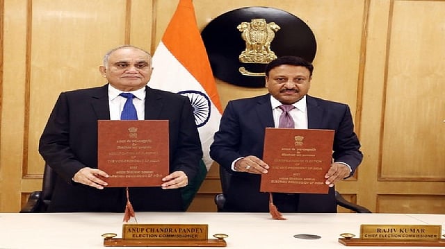 NEW DELHI: Chief Election Commissioner Rajiv Kumar and Election Commissioner Anup Chandra Pandey jointly signed the 'Certification of the Election' of Jagdeep Dhankar as the Vice President-elect on Sunday.