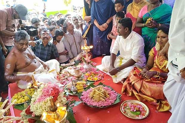 The Bride Anju and the groom Sarath exchanged garlands and performed rituals in the presence of a priest at the mosque premises, which was decked up for the rare occasion signifying communal amity.