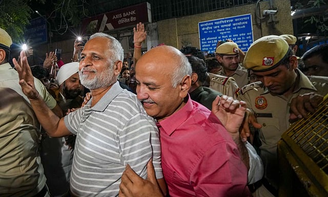 On the first day of his freedom after months of imprisonment, the AAP leader visited a Jain temple along with his family. In the evening he attended a party meeting in which Kejriwal and other senior leaders were present.