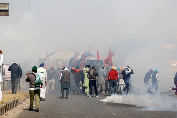 Plumes of smoke were seen as security personnel used multiple rounds of tear gas to disperse the protesting farmers at the Singhu border. At the Tikri border, farmers clashed with police and also tried to remove a truck, which was placed as a barricade, by tying it to a tractor with the help of a chain.