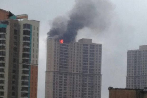 The fire is confined to the 32nd floor of the building, which has two basements, a ground floor and a podium.