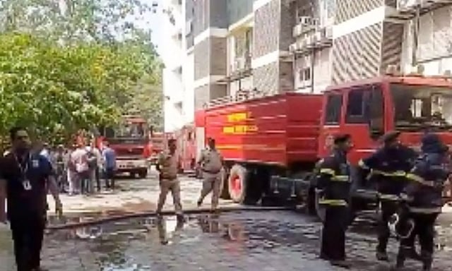 The blaze was noticed around 9.30 a.m. on the sixth floor of the 6-storey Avior Corporate Park on LBS Road, trapping scores of employees working there.