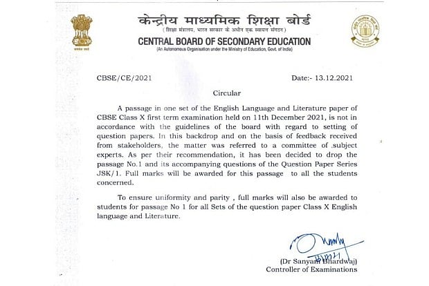 "Full marks will be awarded for this passage to all the students concerned. To ensure uniformity and parity, full marks will also be awarded to students for passage number one for all sets of the question paper," he added.