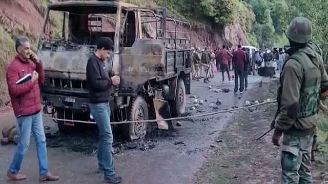 POONCH: Army jawans on Thursday said a fire in an army truck in the Poonch district of Jammu and Kashmir, which claimed the lives of five personnel, was caused likely by grenades lobbed by terrorists.