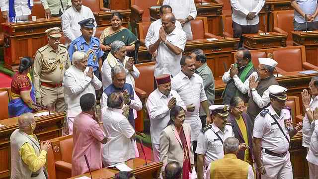 "I am happy to address one more joint session of the Karnataka legislature. My government is fully committed to double the speed of economic, social and physical development of the state. Jai Hind. Jai Karnataka," he said in Hindi, before proceeding out.