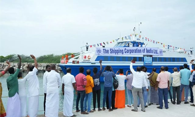Union Minister for Ports, Shipping and Water Ways, Sarbananda Sonowal and Tamil Nadu Minister for Public Works and Ports, EV Velu flagged off the ferry service from Nagapattinam port on Saturday.