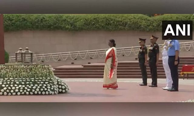 NEW DELHI: President Droupadi Murmu laid a wreath and paid tributes at the National War Memorial in the national capital on the occasion of77th Independence Day.