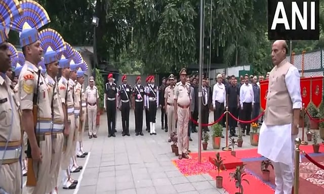 NEW DELHI: With the nation echoing with zeal and enthusiasm on the occassion of 77th Independence Day, Union Defence Minister Rajnath Singh on Tuesday hoisted the tricolour at his residence in New Delhi.
