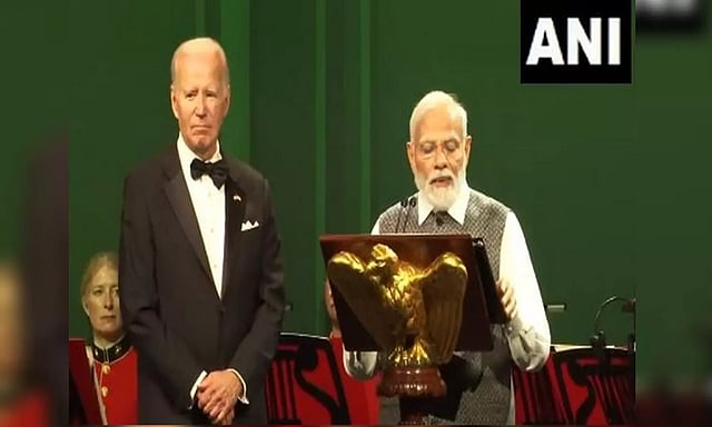 Further Prime Minister Narendra Modi requested President Biden to join him for a toast as the two leaders addressed the State dinner event at the White House. PM Modi said, "There is one more thing left to do tonight- please join me in raising a toast. A toast to our wonderful hosts, President Biden and Jill Biden."
