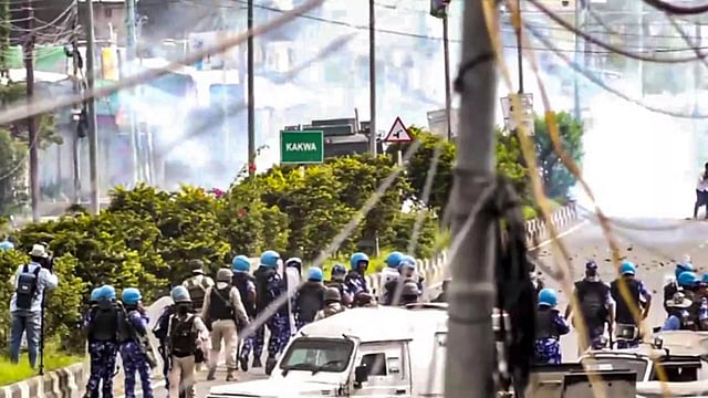 Security forces fired tear gas shells on Tuesday as student and women demonstrators clashed with them during the agitators' attempt to march towards the Raj Bhavan to press for their demands for removal of the DGP and the security advisor to the Manipur government, officials said.