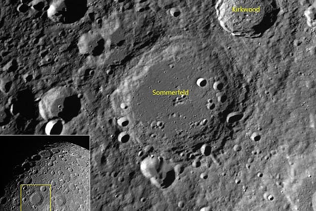 The crater is named after Dr. Arnold Sommerfeld, a pioneering German physicist in the field of atomic and quantum physics. North east of this crater lies the Kirkwood crater named after American astronomer Daniel Kirkwood, another well-formed impact crater which is approximately 68 kms in diameter, ISRO said.