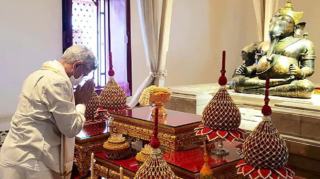 BANGKOK: External Affairs Minister S Jaishankar, who is in Thailand to attend the 9th India-Thailand Joint Commission Meeting, offered prayers at the Devasthana at Bangkok on Thursday morning.